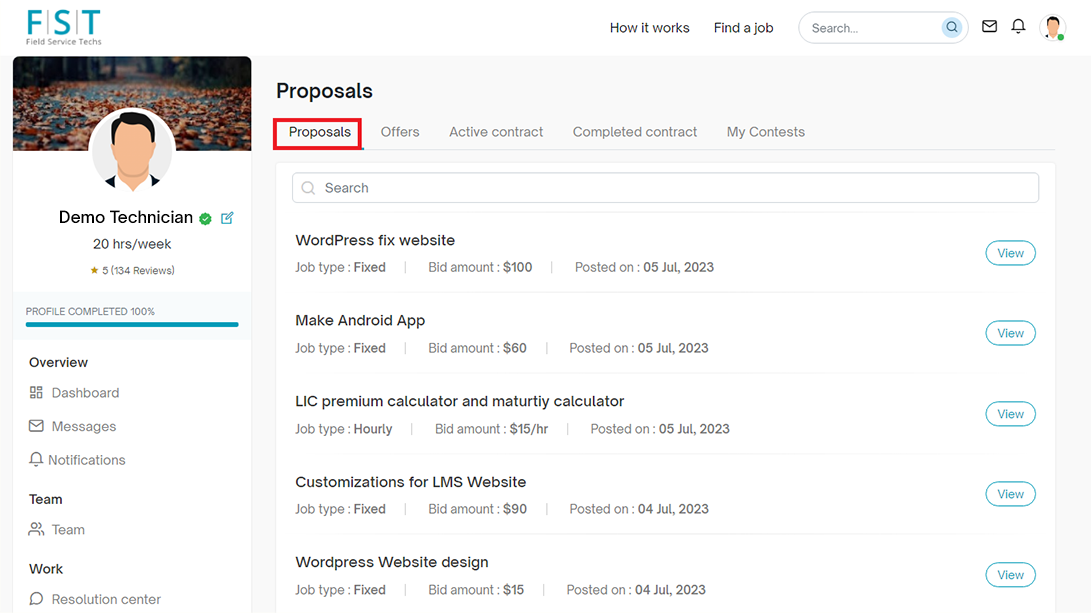 - You can check the job type, bid amount, and date of posting